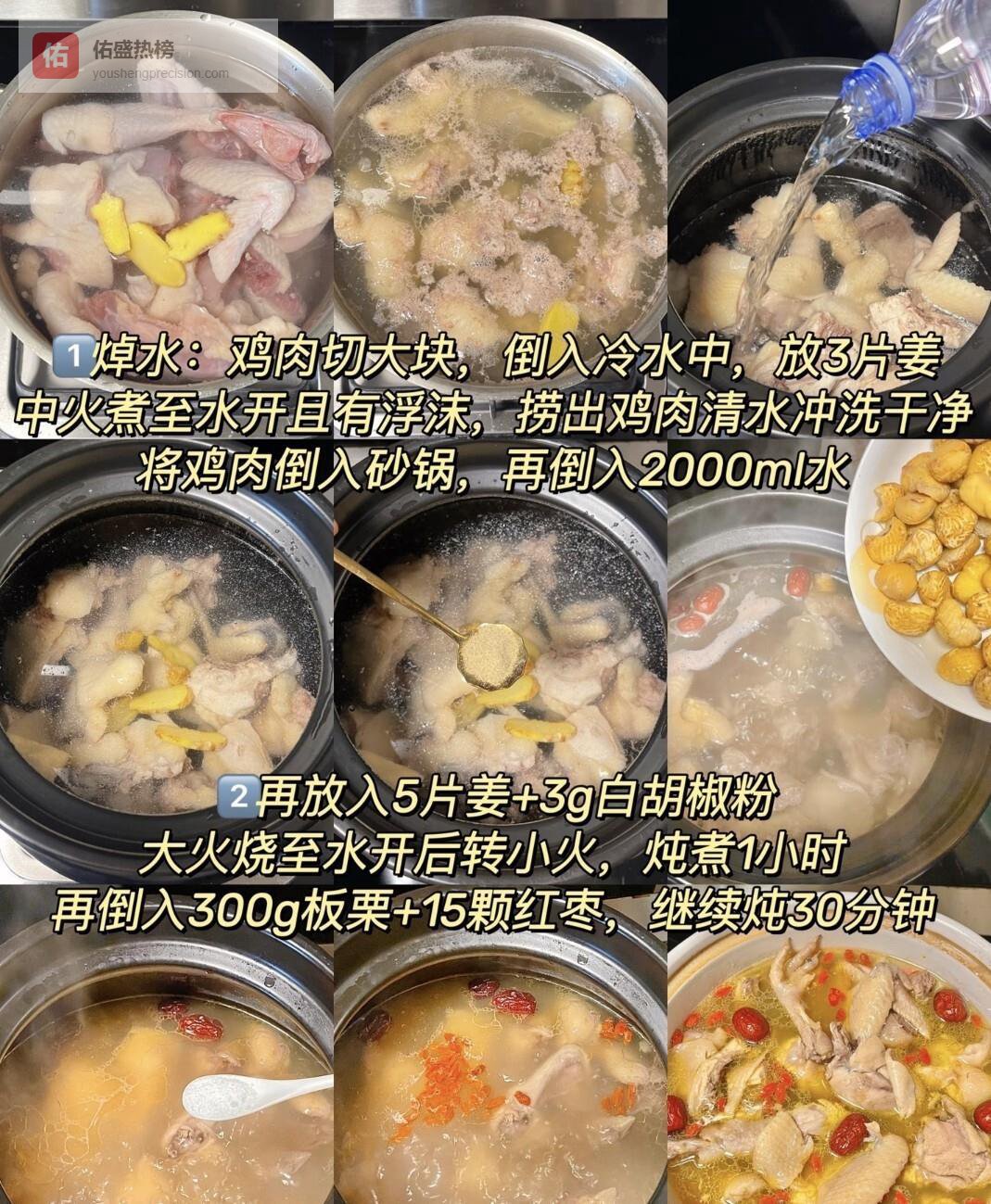 上面两个都是“板栗+鸡”的组合,原理是“钾+牛磺酸”,主攻血压和心律。 下面这个搭配更绝,针对的是现代人普遍的脾胃虚弱和隐形水肿。