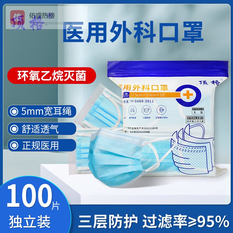 顶格一次性医用外科口罩独立装无菌级成人医用口罩三层透气亲肤不勒耳 蓝色 成人款【灭菌级200只】袋装¥