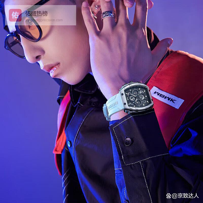 机械风设计,透过透明表盘能看到细腻的机芯运转,好像在欣赏一场微型机械秀。多子表盘布局让信息一目了然,指针、日期、秒表都能轻松掌控。潮流的多元圆形造型,时尚感扑面而来,走在路上还挺有范儿。