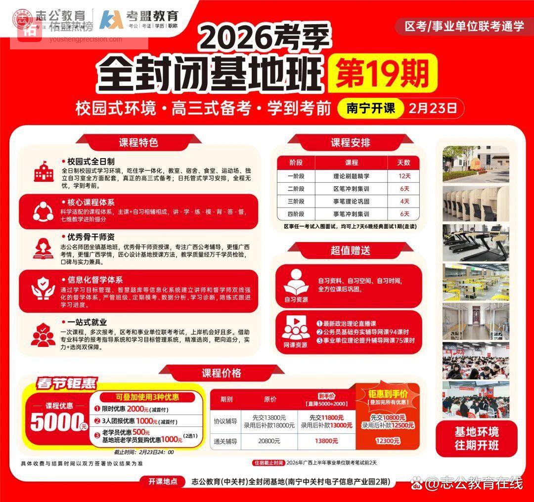 ✅校园式环境,隔绝外界干扰:志公教育(中关村)2026考季全封闭基地班19期打造全日制校园式学习环境,高三严管式备考,一直可以学到考前。如果你自律性较差,需要一个好的学习氛围和环境;如果你想要更快速上/岸,那你需要一个科学的学习体系,如果你想要考更好的职位,那你需要个性化和有效的提分方案,那么恭喜你,已经找到了解决方法,请来志公教育全封闭基地班!