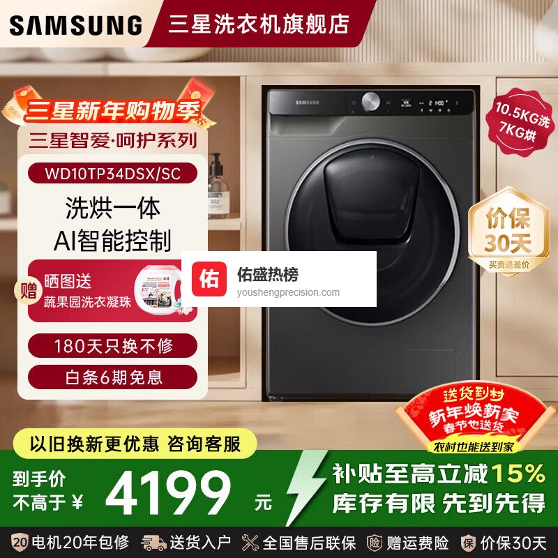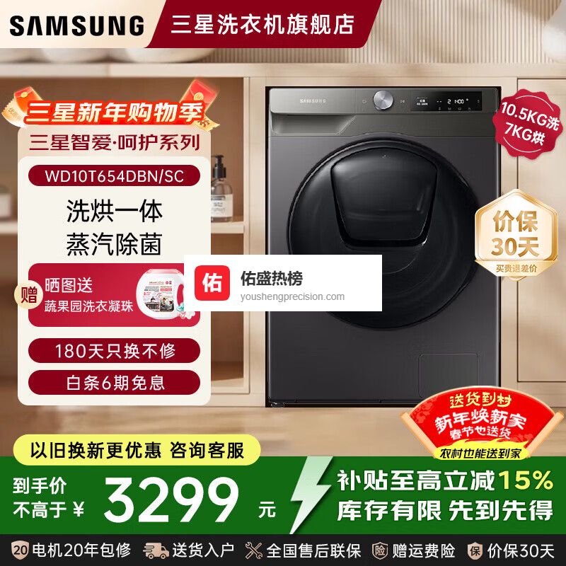 【品牌直营】三星智爱·呵护系列洗干一体机10.5KG洗涤容量WD10TP34DSX/SC洗烘一体¥