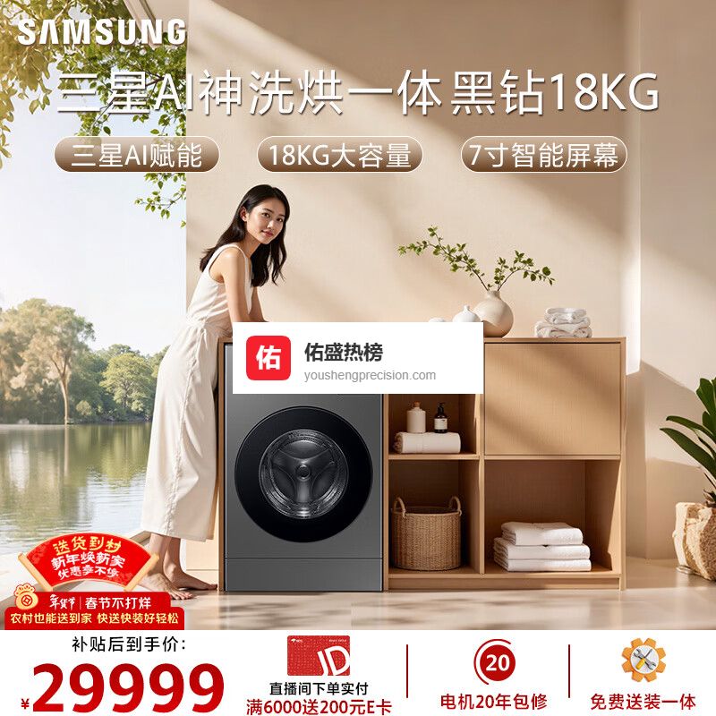 第九款:三星AI神黑钻18KG洗烘一体机