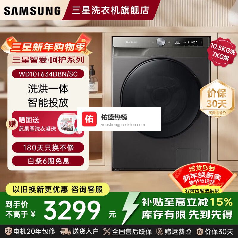 三星洗烘一体机哪个系列好,性价比高?第一款:三星10kg洗烘一体机WD10T634DBN/SC