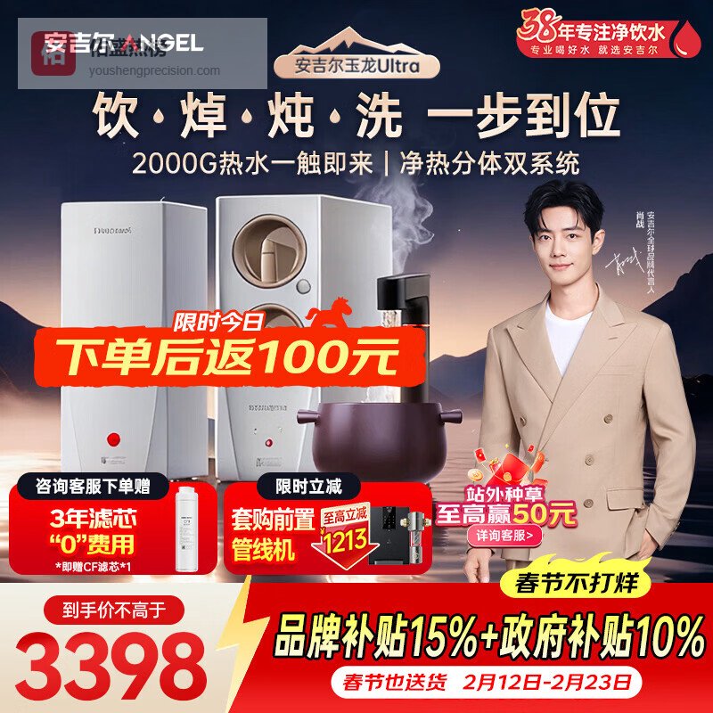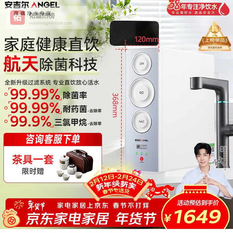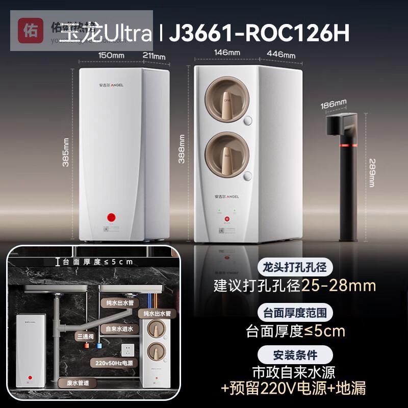 【京东自营】安吉尔净水器玉龙Ultra1000G家用厨下式加热直饮机2000G温热水流速5年RO膜创¥