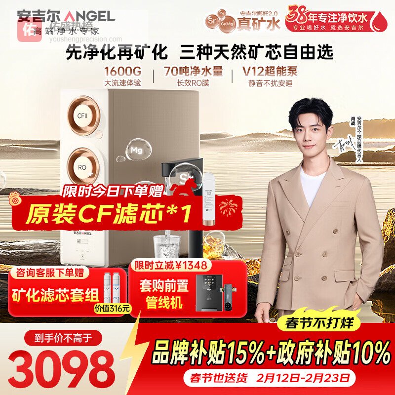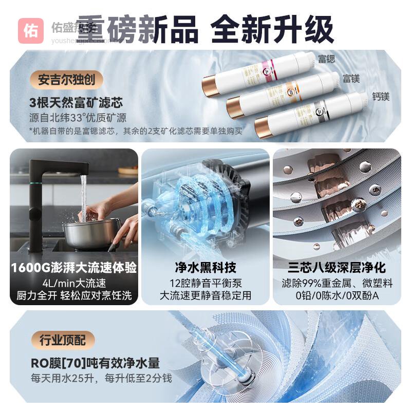 【京东自营】安吉尔家用净水器哪吒2.0真矿水4000厨下净水机RO膜反渗透哪吒2代1600G矿物质水¥