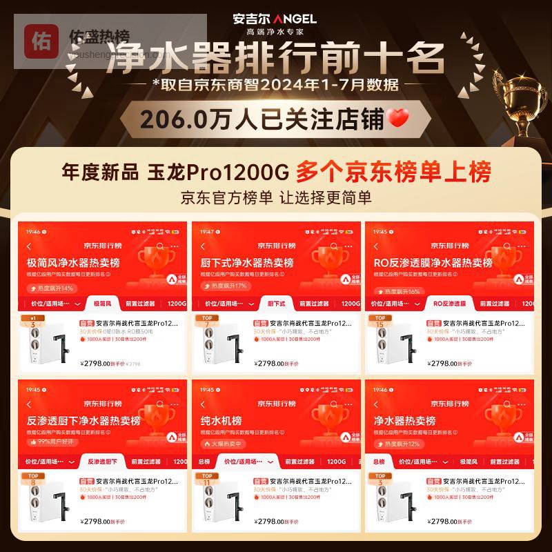 【京东自营】安吉尔家用净水器玉龙Pro1200G反渗透厨下直饮净水机5年长效RO膜过滤纯水净饮机J3¥