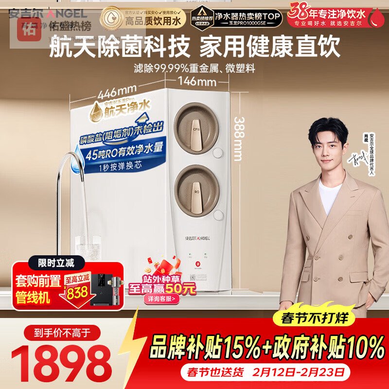 【京东自营】安吉尔家用净水器玉龙Pro1000GSE反渗透厨下直饮机5年长效RO膜母婴直饮净水机过滤¥