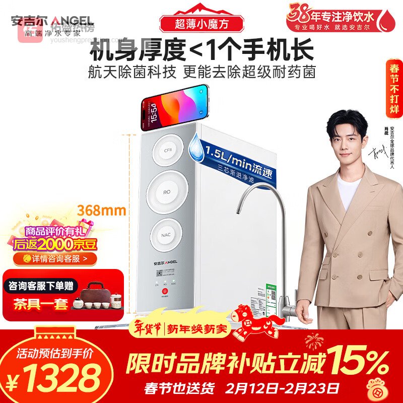 【京东自营】安吉尔家用净水器魔方2代1500直饮净水机24吨长效RO膜反渗透厨下式过滤器净饮机J37¥