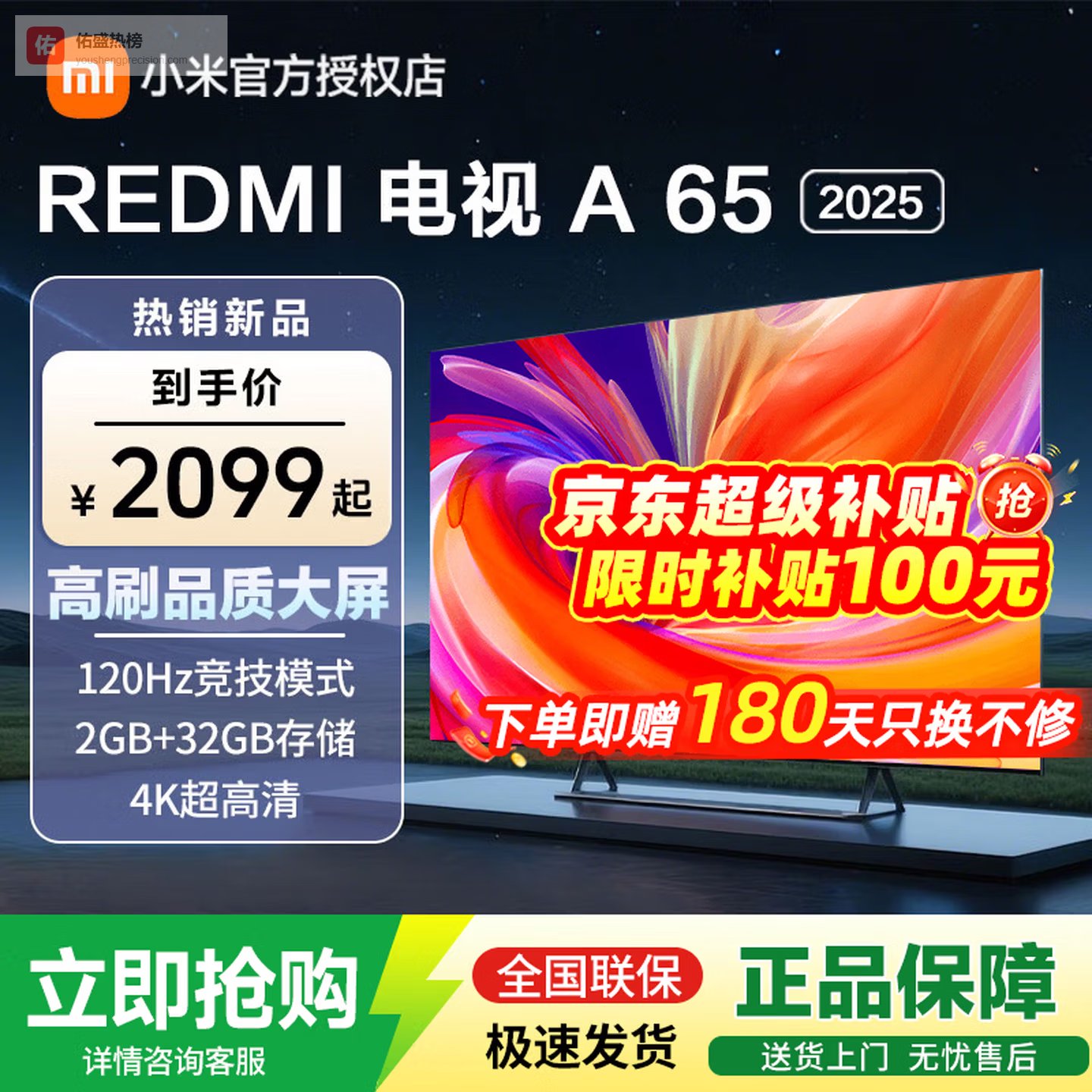 小米小米电视65英寸 Redmi A65 2025款 32G大存储智能电视120Hz高刷 远场语音 65英寸 REDMI A65 2025【限量300台】¥