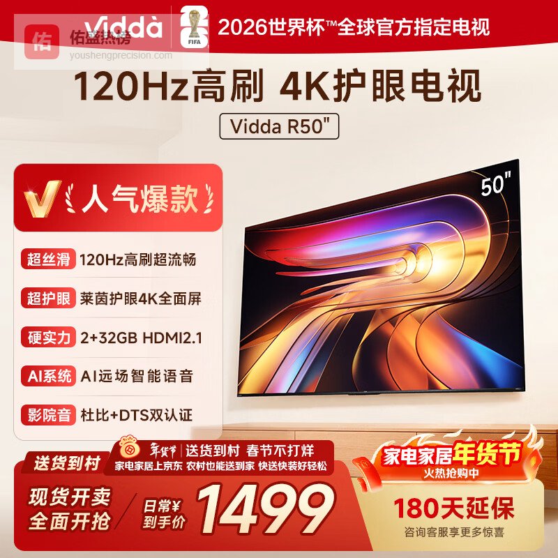 Vidda海信电视50英寸 R50 120Hz高刷 2+32G 4K智能 以旧换新家电液晶游戏电视50V1ND-R 50英寸¥