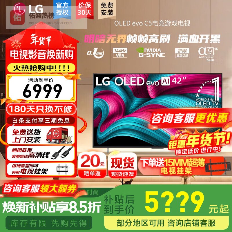 LG C5 电视2025年新品42/48/55/65/77/83英寸OLED屏幕智能游戏电视AI音画调节薄4K高清电视【全国】 42英寸 新能效C5电竞OLED电视高刷低延迟¥
