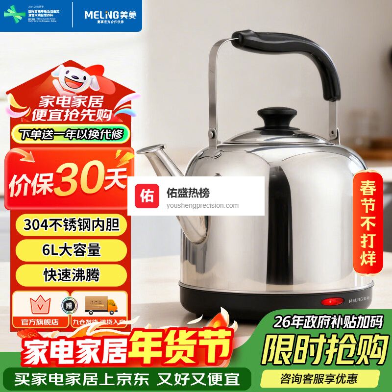 美菱(MeiLing)电水壶电热水壶热水壶家用恒温304不锈钢烧自动断电水壶6L大容量烧水壶MH-D6061¥