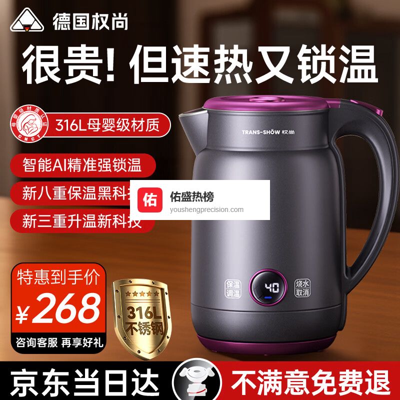 权尚【德国品牌丨秒速热】电热烧水壶热水壶316L不锈钢保温一体智能恒温除氯电水壶家用烧水2026新款 1.7L 2026新款原装正品丨秒速热丨316L材质 【家用优选丨316L不锈钢母婴材质】烧水壶¥