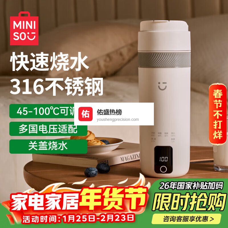 名创优品MINISO便携式烧水杯450ml保温电热水杯加热水壶烧水壶旅行煮茶婴儿外出冲泡奶恒温水瓶小型电水壶¥