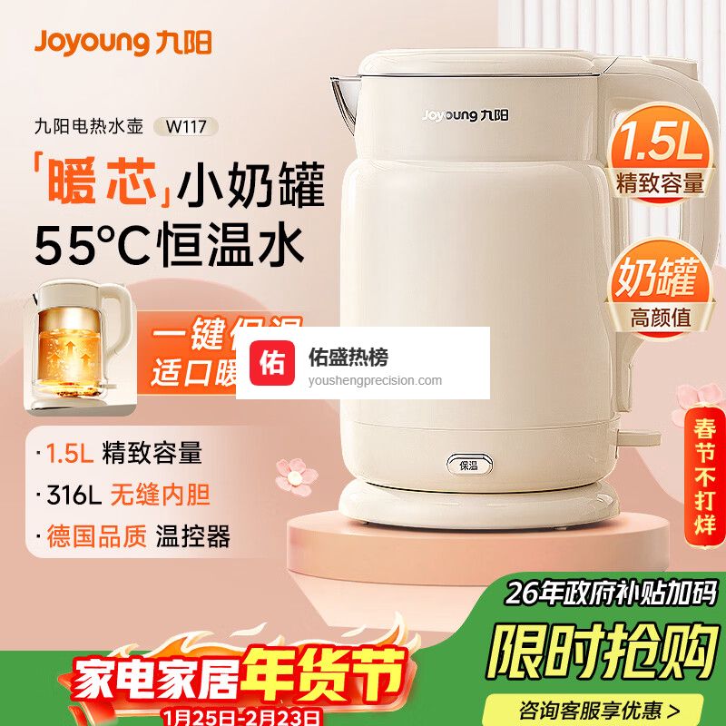 九阳(Joyoung)电水壶热水壶烧水壶 316L不锈钢1.5L容量热水壶 一键保温恒温水壶 双层防烫电热水壶K15FD-W117¥