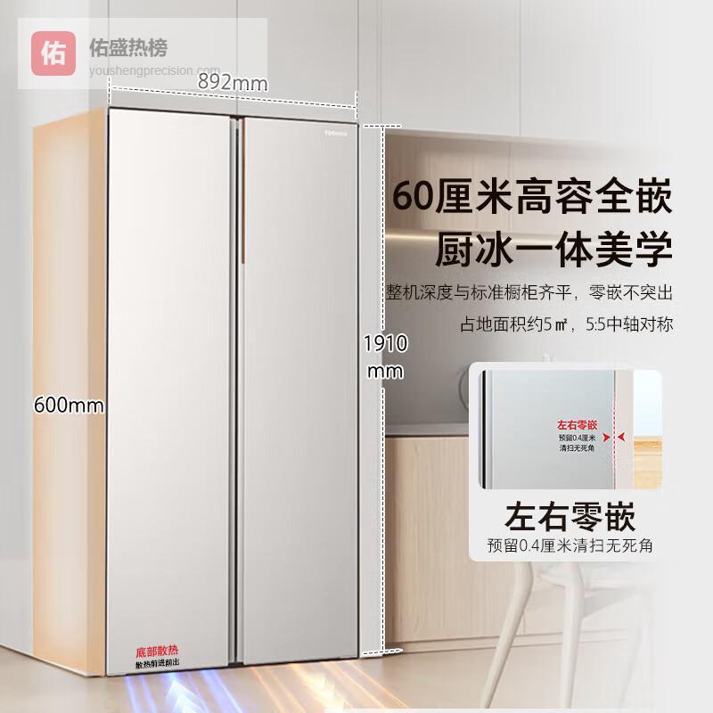 3. 东芝(TOSHIBA)540L对开门冰箱573超薄零嵌入式风冷无霜家用一级能效变频节能大容量制冰GR-RS573WI-PG1国家补贴