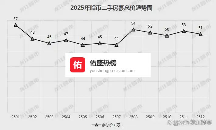 12月,哈市二手房的套总价为51万。