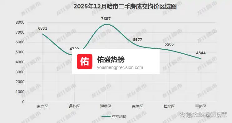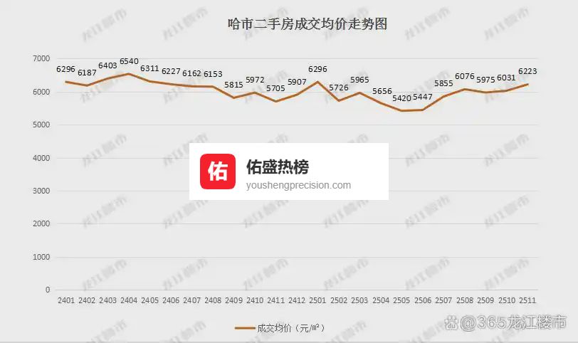 12月,哈市二手房成交均价6080元/㎡,环比下降2%。