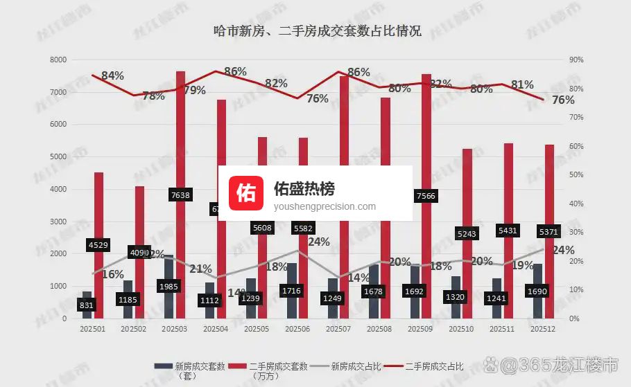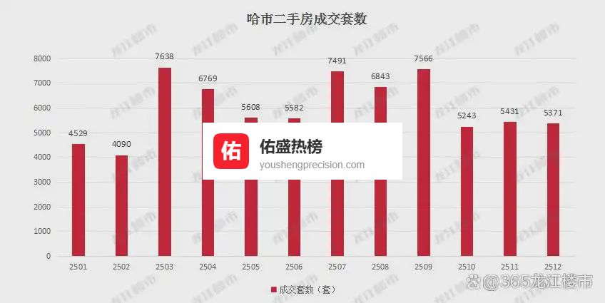 12月,哈市二手房成交套数5371,环比下降1%。