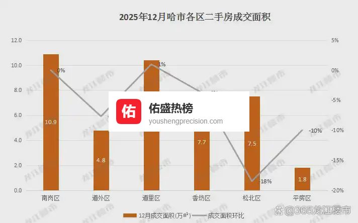 12月,哈市二手房共成交45万方,环比下降2%。
