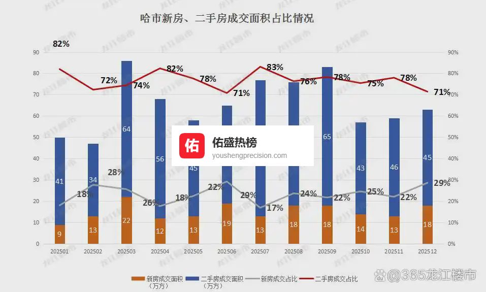 2025全年,哈市二手房共成交651万方。