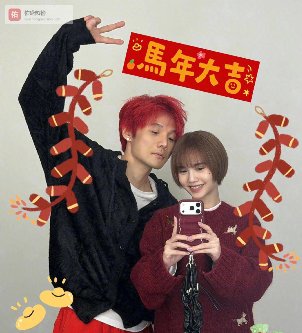 杨丞琳配的文字是“马年祝大家,幸福加‘马’,快乐加倍”,李荣浩转发了这条动态,互动自然甜蜜。 有眼尖网友还从他们晒的卡通风格合照里,推测当晚可能还有好友井柏然和刘雯一同守岁。
