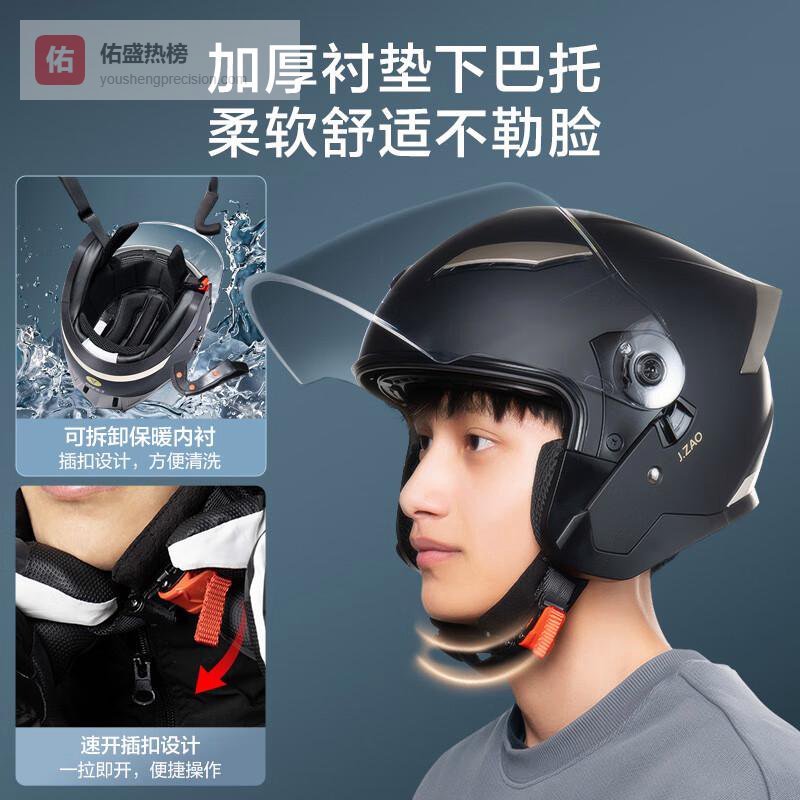 京东京造 TK08摩托车头盔双镜片 3C认证新国标秋冬季防冻保暖护耳电瓶车电动车头盔M码黑色¥