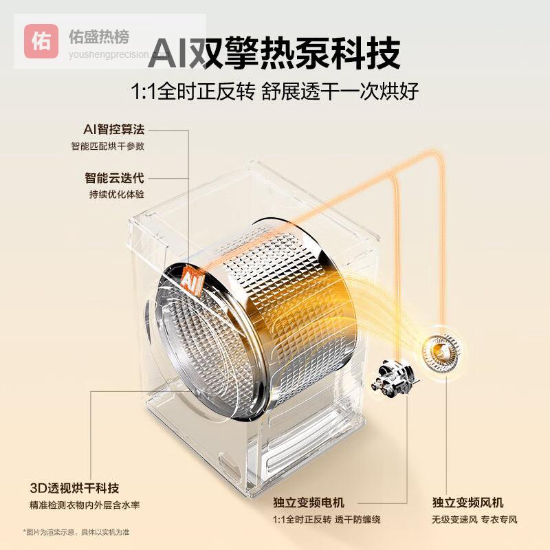 双擎热泵科技:凭借创新的双驱动设计,能够实时感知烘干状态,避免衣物缠绕,让每一件衣物都能均匀受热。这样的技术不仅提升了烘干效率,还减少了电耗,给家庭节省开支。不论是厚重冬衣还是轻薄夏装,都能得到理想的干燥效果,使用起来简单方便,减少了许多传统烘干方式带来的困扰。
