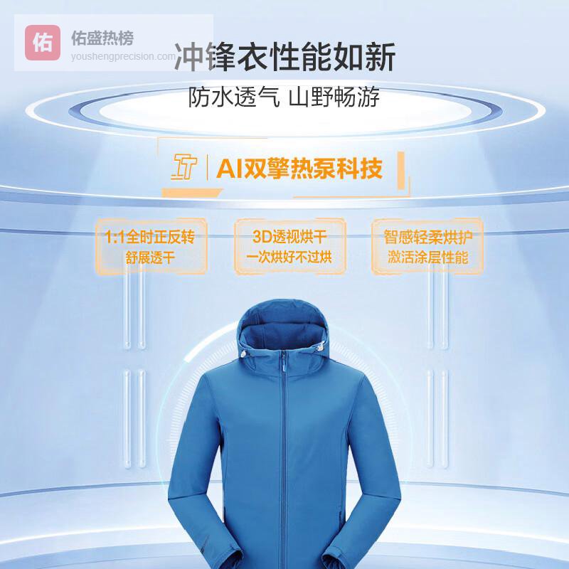 全方位的护理模式:具备多种专业烘护模式,针对冲锋衣和羊毛衫等不同材质的衣物,提供精致的烘干体验。此外,内置的雾化空气洗功能,无需水洗便可去除皱褶和异味,延长衣物使用寿命,特别适合宠物家庭,提升了生活质量。