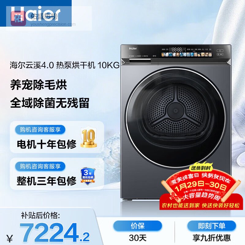 第五款:海尔云溪4.0热泵烘干机10KG