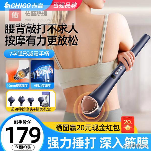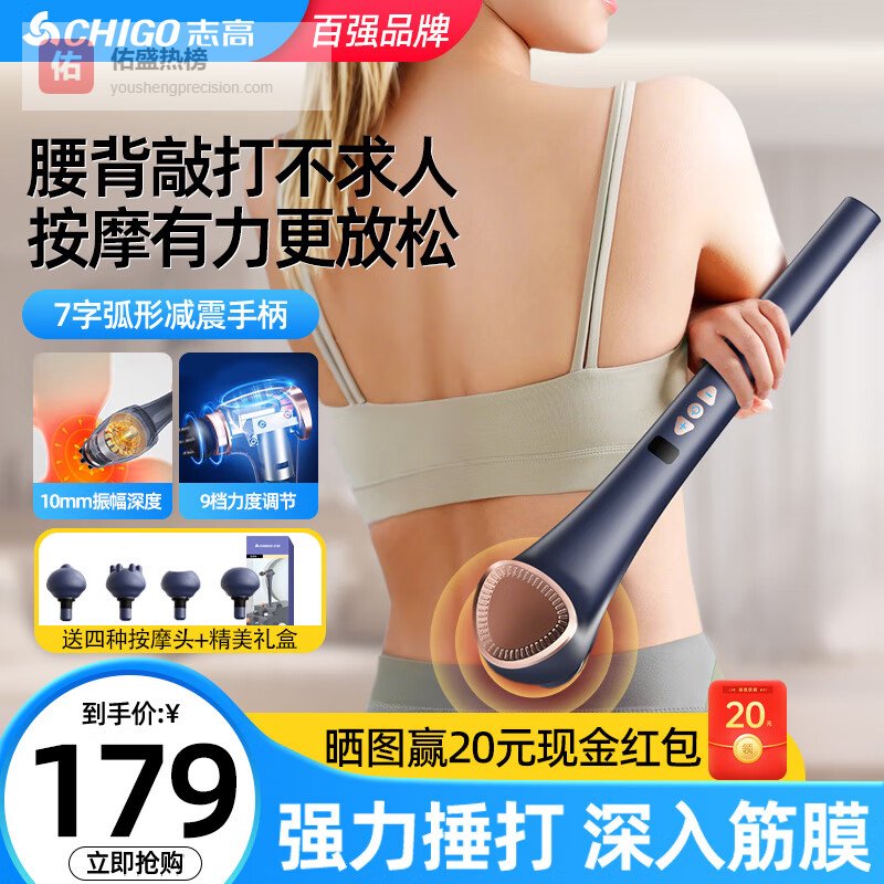 志高(CHIGO)筋膜枪肌肉放松按摩神器多功能全身颈肩部颈膜枪背部腿专业健身电动手持按摩棒按摩锤震动按摩仪器 【12D仿真人手法】9档变速调节+7种模式+礼盒装 七夕情人节送男女朋友老公老婆节日高档实用生日礼品物¥