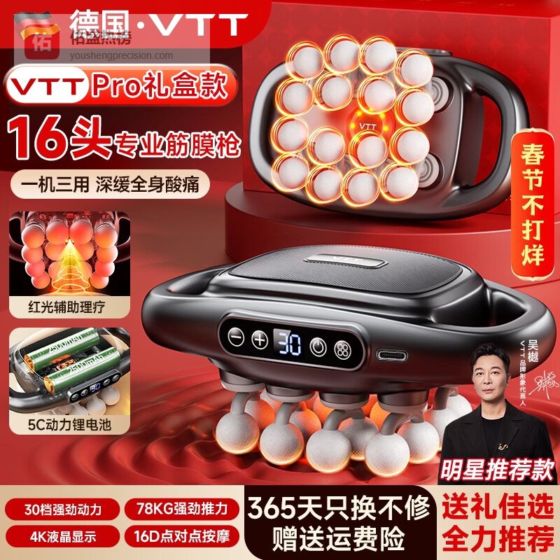第1款:VTT 16头Pro款1️⃣ 30档力度调节:这个按摩器有30个档位可以调节,力度从轻柔到强劲都有,你可以根据自己的需要,或者身体不同部位的承受能力,调整到最舒服的档位,用起来挺人性化的。