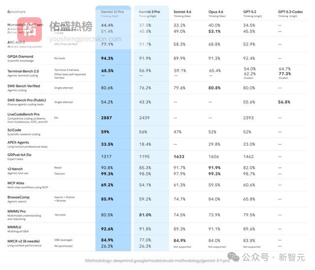 在业界最为关注的性能对标中,Gemini 3.1 Pro展现出了令人窒息的统治力。