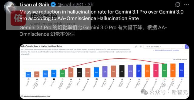 更重要的是,相较于上一代,3.1 Pro在幻觉率上大幅下降。