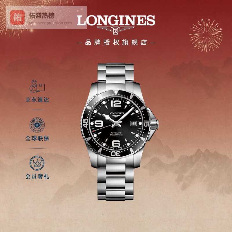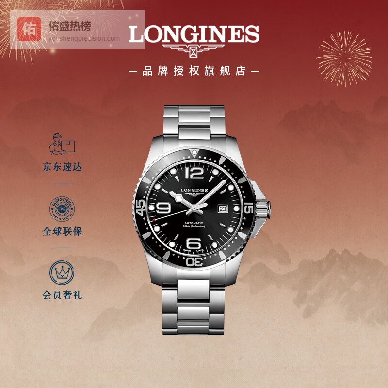 【京东自营】浪琴瑞士手表康卡斯潜水系列男士钢带机械表情人节礼物L38414566¥