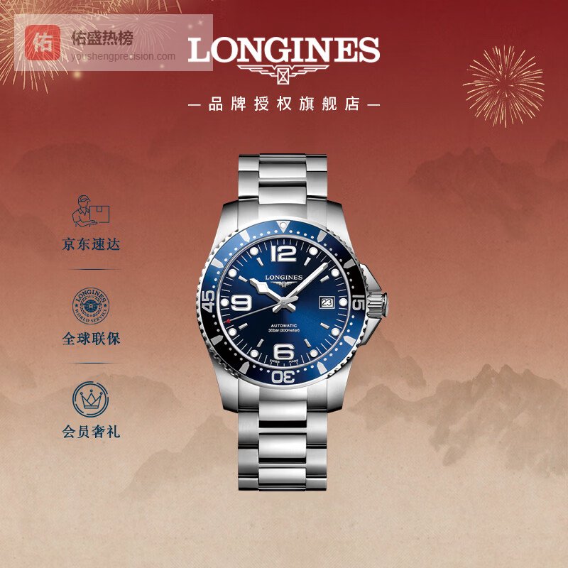 【京东自营】浪琴瑞士手表康卡斯潜水系列男士钢带机械表情人节礼物L37424966¥