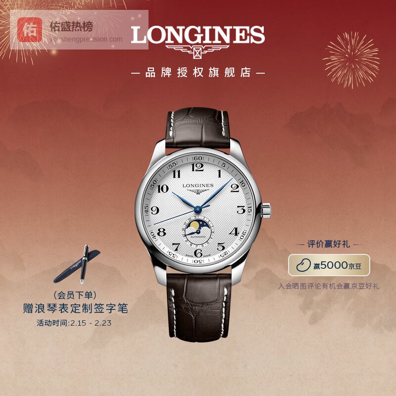 【京东自营】浪琴瑞士手表名匠系列月相腕表男士皮带机械表情人节礼物L29194783¥