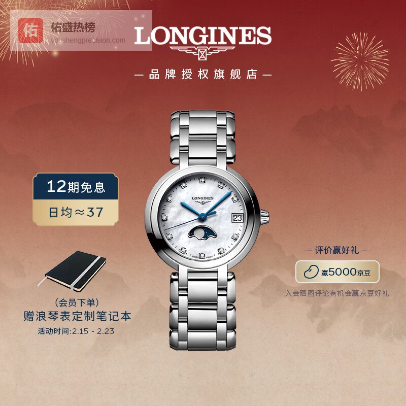 【京东自营】浪琴瑞士手表心月系列月相女士钢带石英表情人节礼物L81154876¥