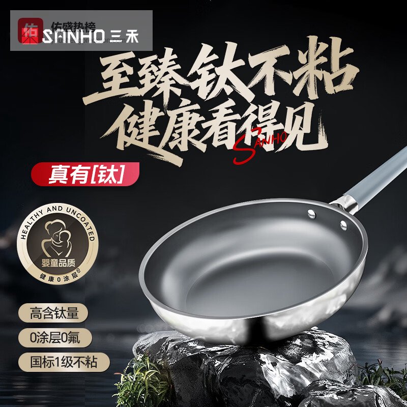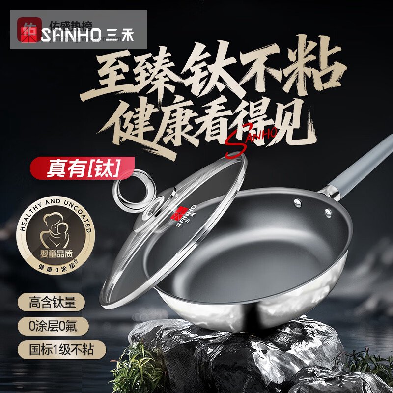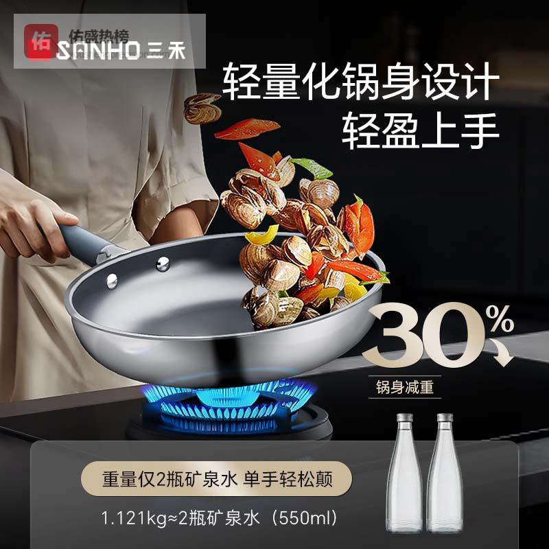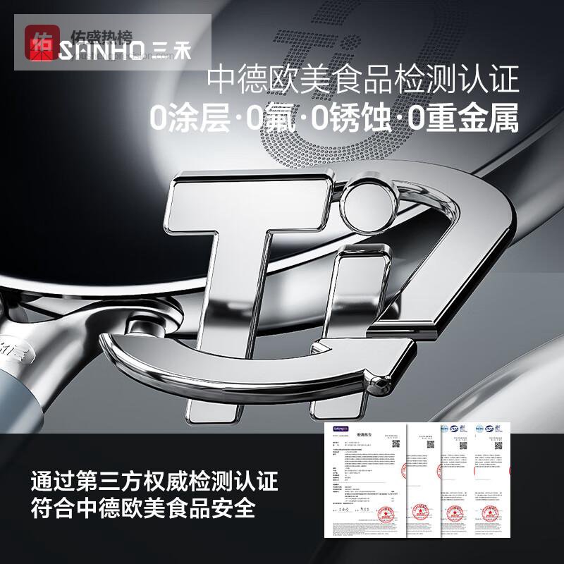 【品牌直营】三禾炒锅纯钛TAI1不粘锅无涂层炒菜锅抗菌少油烟锅燃气电磁炉通用【健康纯钛】32cm¥