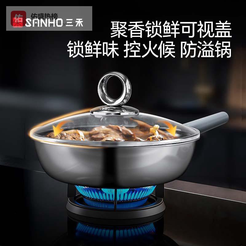 【京东自营】三禾0涂层炒锅无涂层不粘锅钛钢不锈钢电磁炉通用炒菜锅30cmLC30S16¥