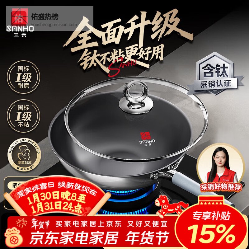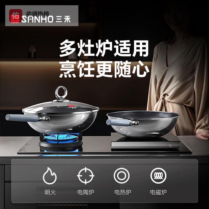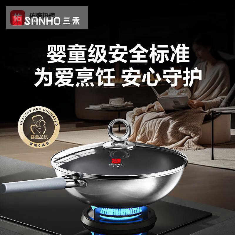 【京东自营】三禾99钛0涂层炒锅无涂层不粘锅钛合金炒菜锅电磁炉燃气通用32cm¥