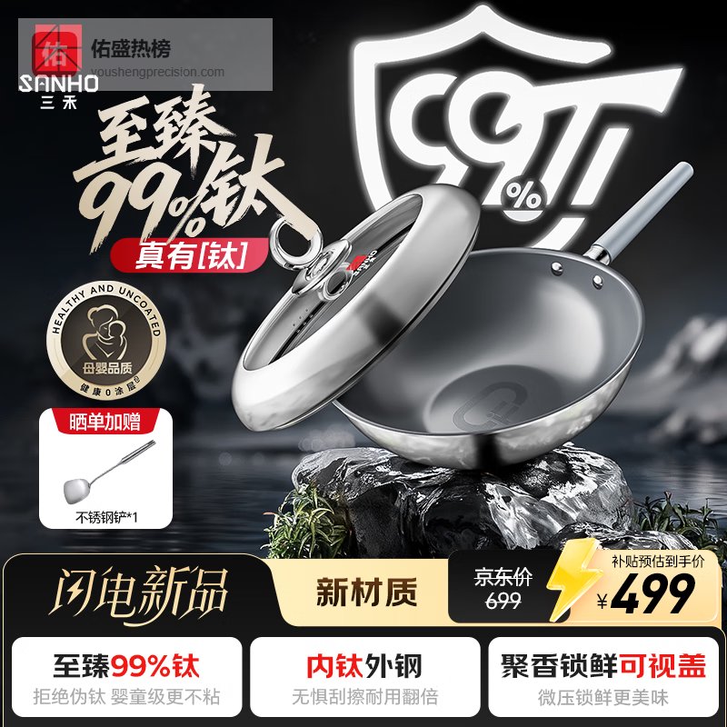 N0.8:三禾健康纯钛32cm炒锅TAI1