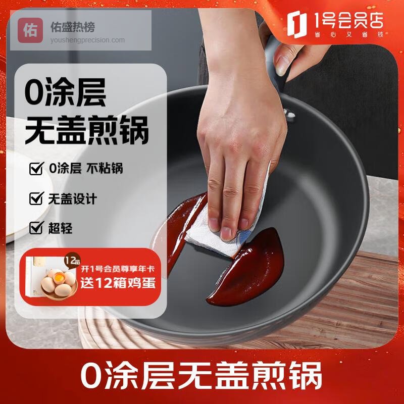 【京东自营】三禾0涂层煎锅无涂层不粘锅304钛不锈钢电磁炉通用煎炒锅¥