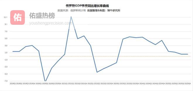 但越来越多的迹象显示,战时经济中资源越来越多地投入军事部门,严重扭曲了经济结构,经济衰退的压力逐渐加剧。俄罗斯不仅恶性通胀持续、利率高企,债务攀升,赤字严重,自2025年开始,军事支出也难以刺激经济,经济增速大幅下滑,到2025年下半年,俄罗斯的经济增长已经滑落到0.6%左右。