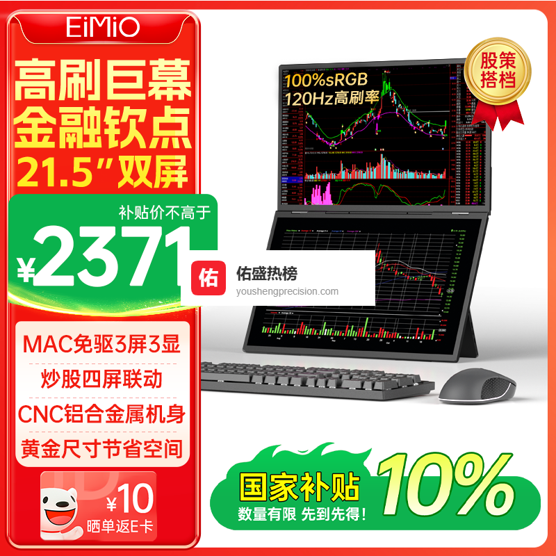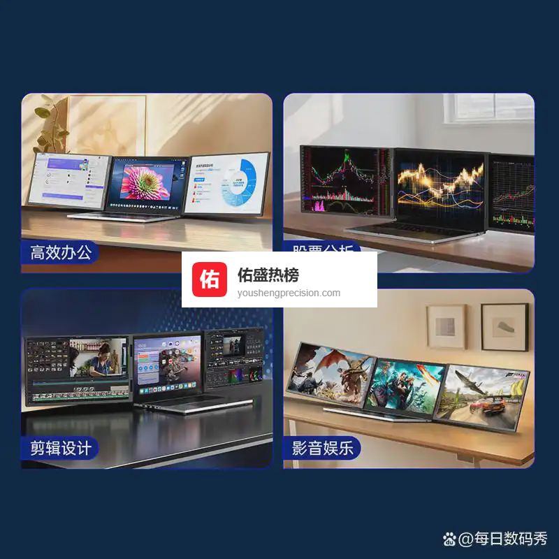 便携式双屏显示器充分展现出21.5英寸的宽广视野,特别适合在办公、炒股或游戏时随身携带。无论是工作还是娱乐,这种设计都极大地提升了移动金融体验,享受灵活多变的使用场景,让每一次的操作都变得轻松便捷。同时,其可折叠设计也为携带提供了更多可能性,解决了空间不足的问题。