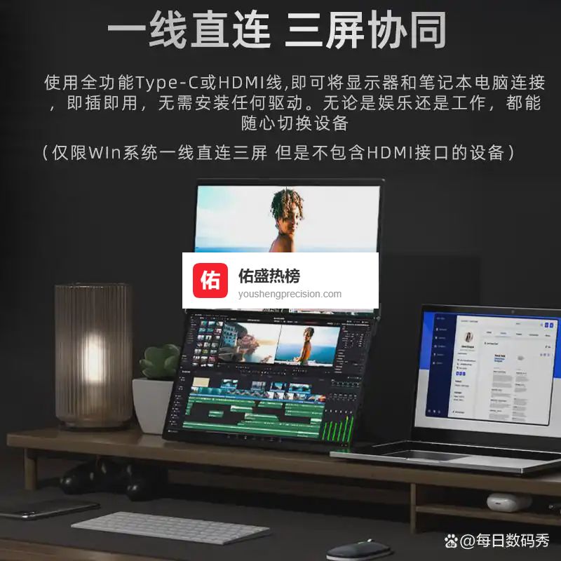 连接方式多样也是其一大亮点,兼容Windows和Mac系统,通过Type-C和HDMI接口提供多种显示模式。不管是在三屏两显还是扩展模式中,均能轻松实现高效协作,让工作气氛更加融洽,方便团队沟通和项目展示。