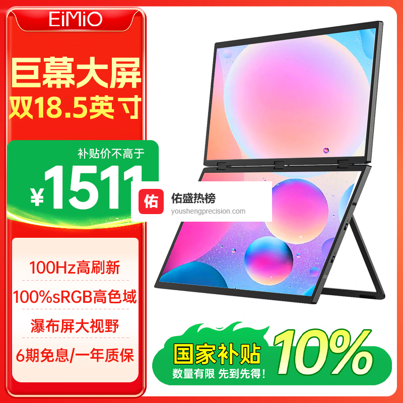 【京东自营】Eimio便携式显示器双屏显示器100Hz高刷显示屏18.5英寸笔记本电脑副屏扩展三屏办¥