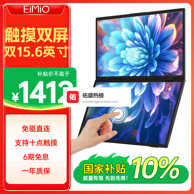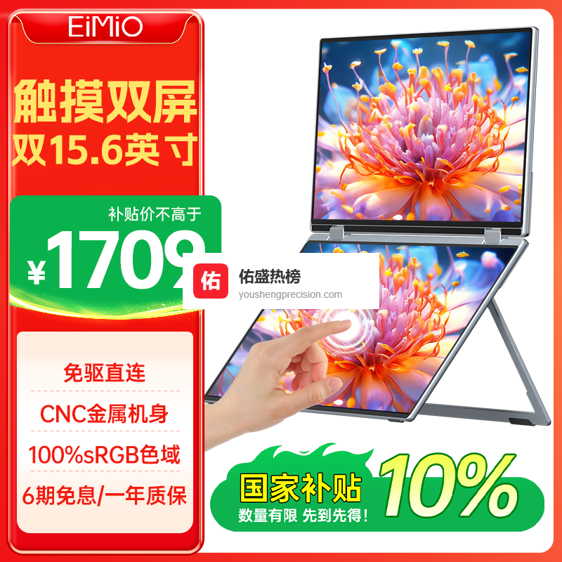 【京东自营】Eimio15.6英寸折叠触控双屏便携显示器扩展三屏笔记本电脑触摸副屏办公炒股游戏大屏E¥