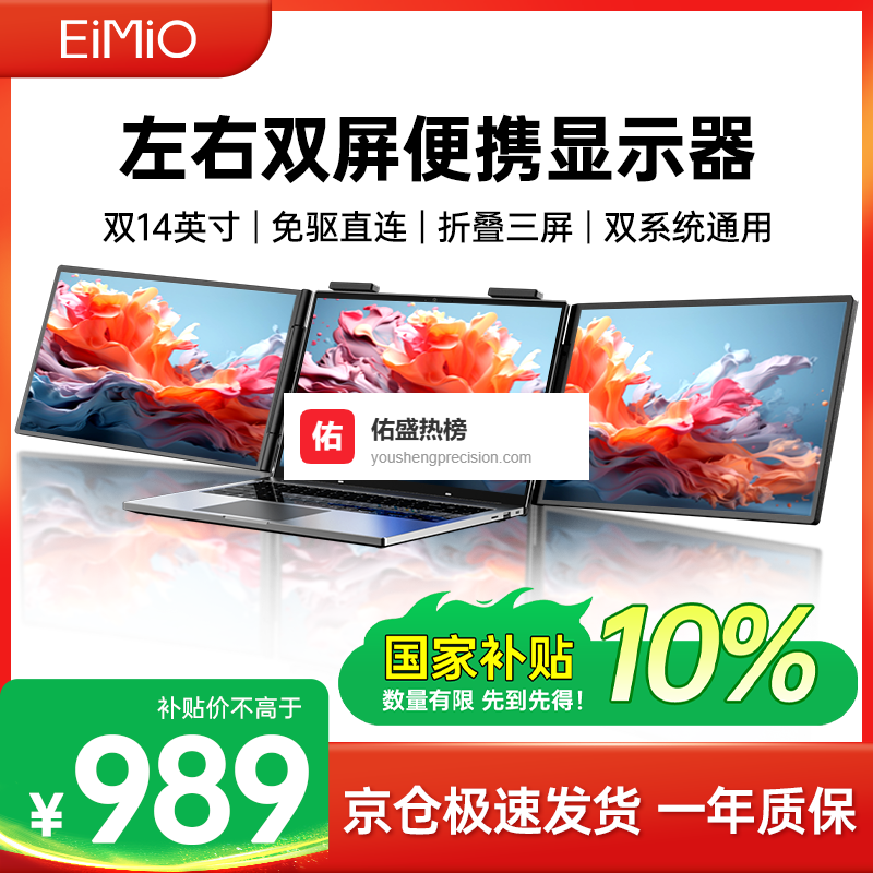 【京东自营】Eimio可折叠双屏便携式显示器扩展三屏笔记本副屏电脑扩展屏幕双14英寸办公炒股游戏扩展¥