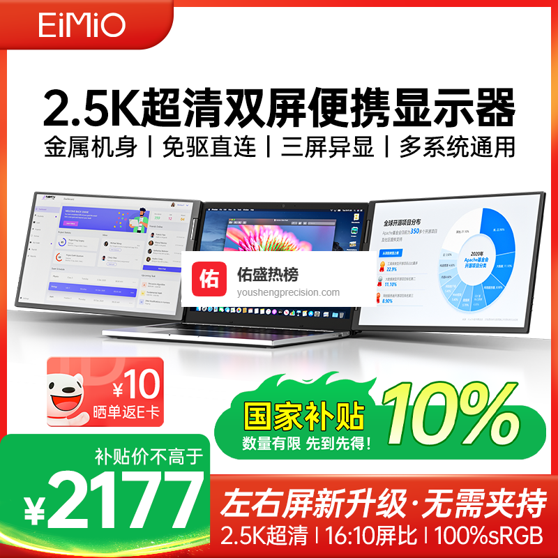 Eimio办公大屏哪个型号的质量好省电?第一款:Eimio双屏便携显示器E24